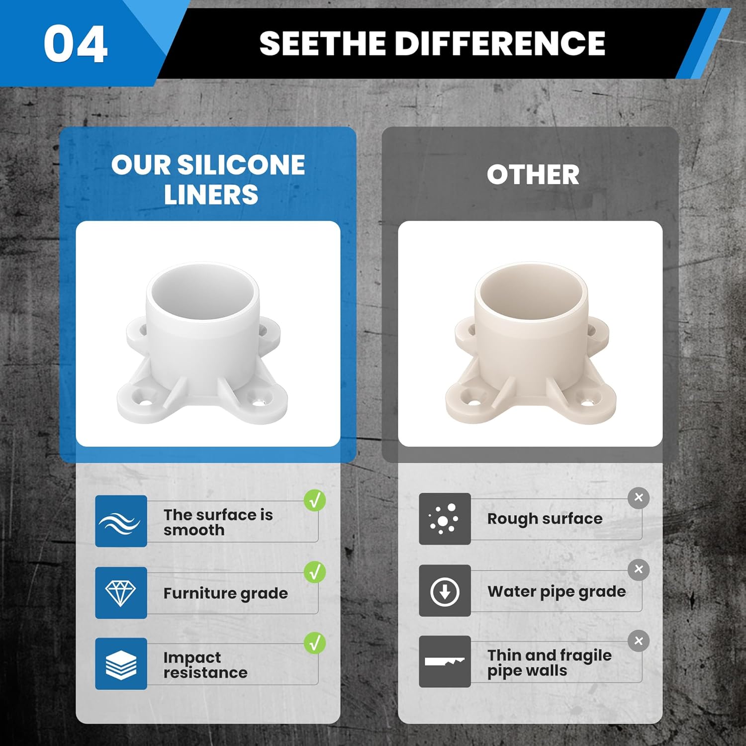 - 【Precision Fit for 3/4 Inch PVC Pipes】Designed for 3/4" Schedule 40 PVC pipes with an actual OD of 1.06". Provides a snug, secure fit for table legs, shelves, and furniture builds.