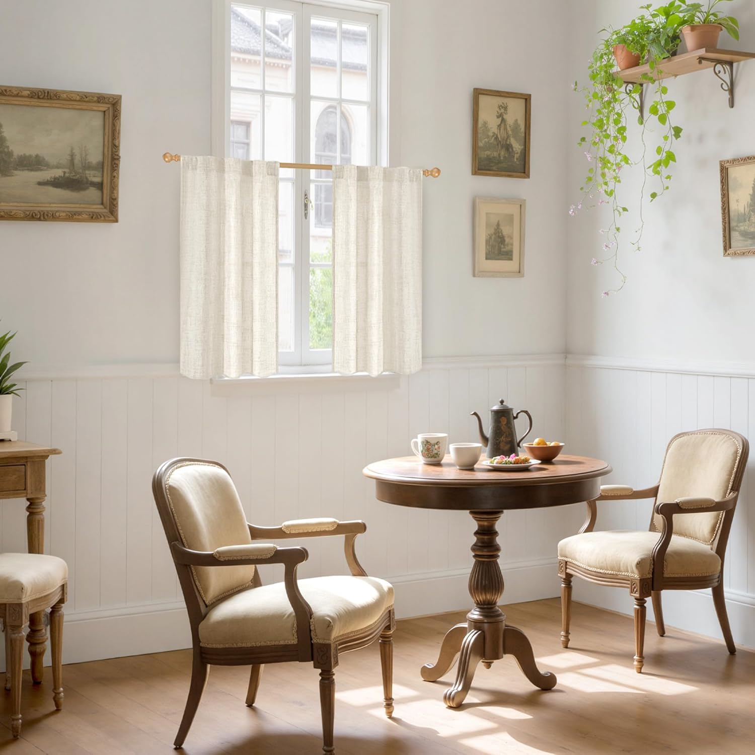 YoungsTex Linen Curtains 40 Inch Length for Kitchen, Semi Sheer Short Window Drapes with Rod Pocket Back Tab Light Filtering for Living Room Bathroom Cafe, 2 Panels, 30 X 40 Inch