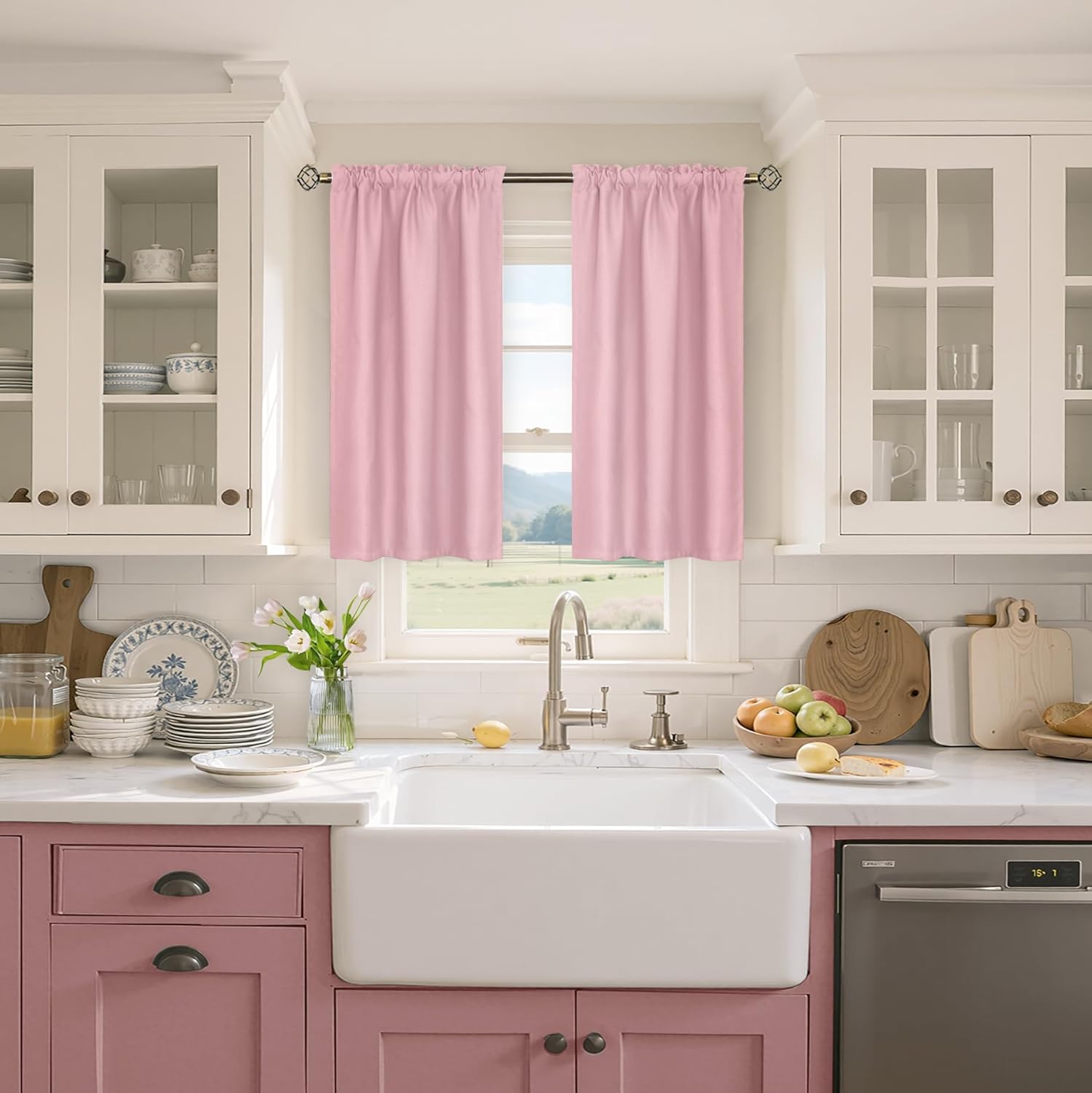 - Package Includes: Set of 2 pink blackout curtains; each panel measures 34 Inch wide by 45 Inch long.