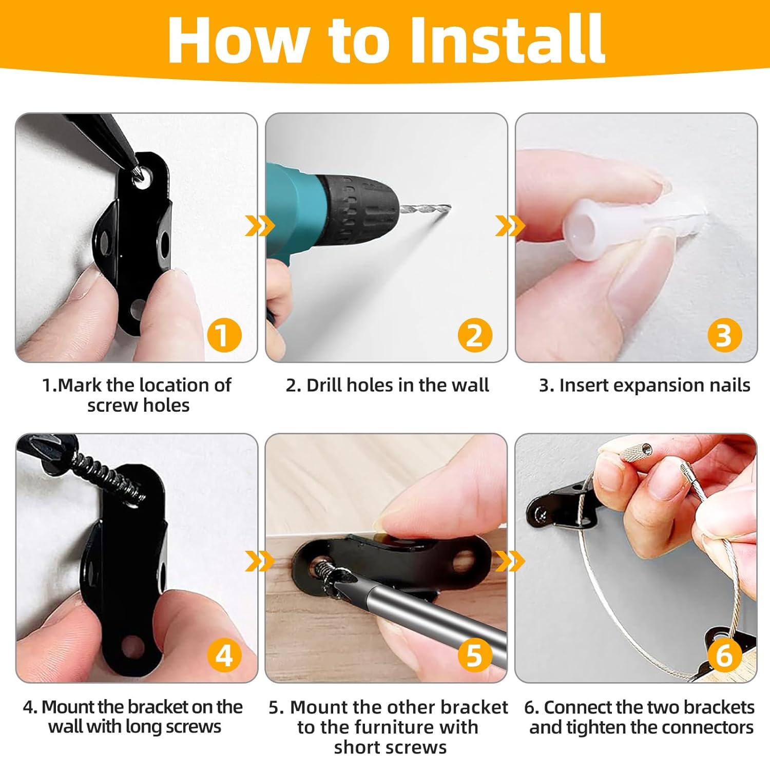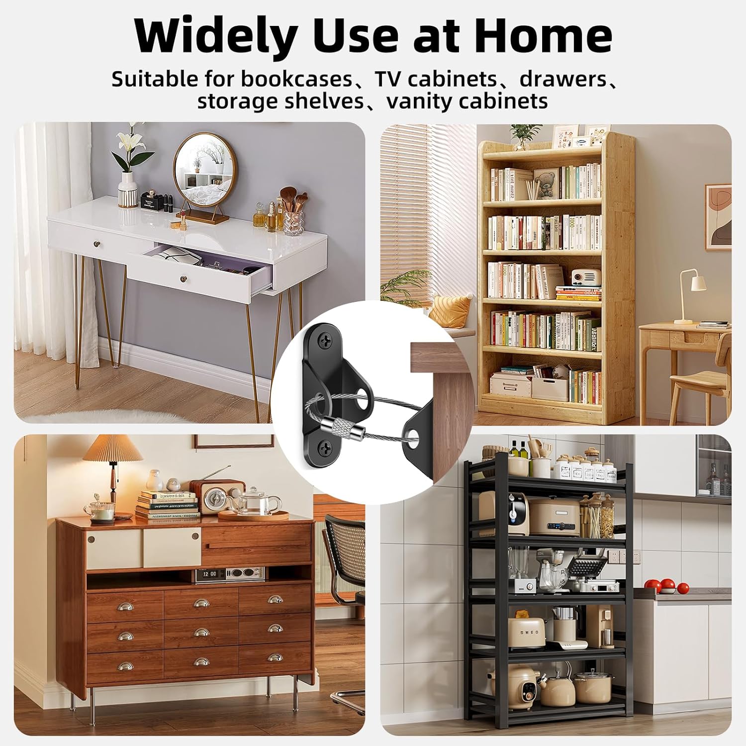 - WIDELY APPLICABLE SCENARIO : This furniture wall anchor is suitable for various furniture types, such as bookcases, dressers, closets, TV cabinets, etc., preventing accidents caused by tipping furniture. Its detachable design makes it more convenient when you need to clean the back of your furniture or move it to meet diverse life needs.