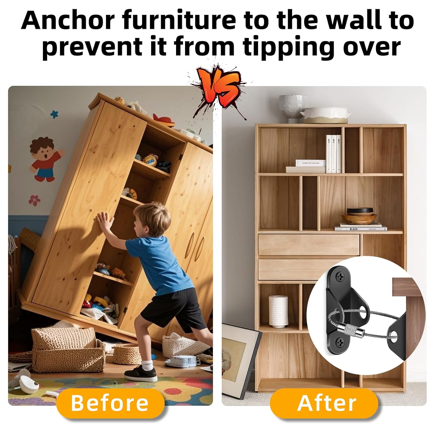 - BABY SAFETY AND PROTECTION : We understand that children's curiosity is everywhere and can lead to dangerous tipping accidents when they try to climb on furniture. This child safety furniture anchor can securely hold the furniture, even with up to 400 pounds of pressure, to ensure that the furniture is stable and does not fall over, providing all-around protection for your child.