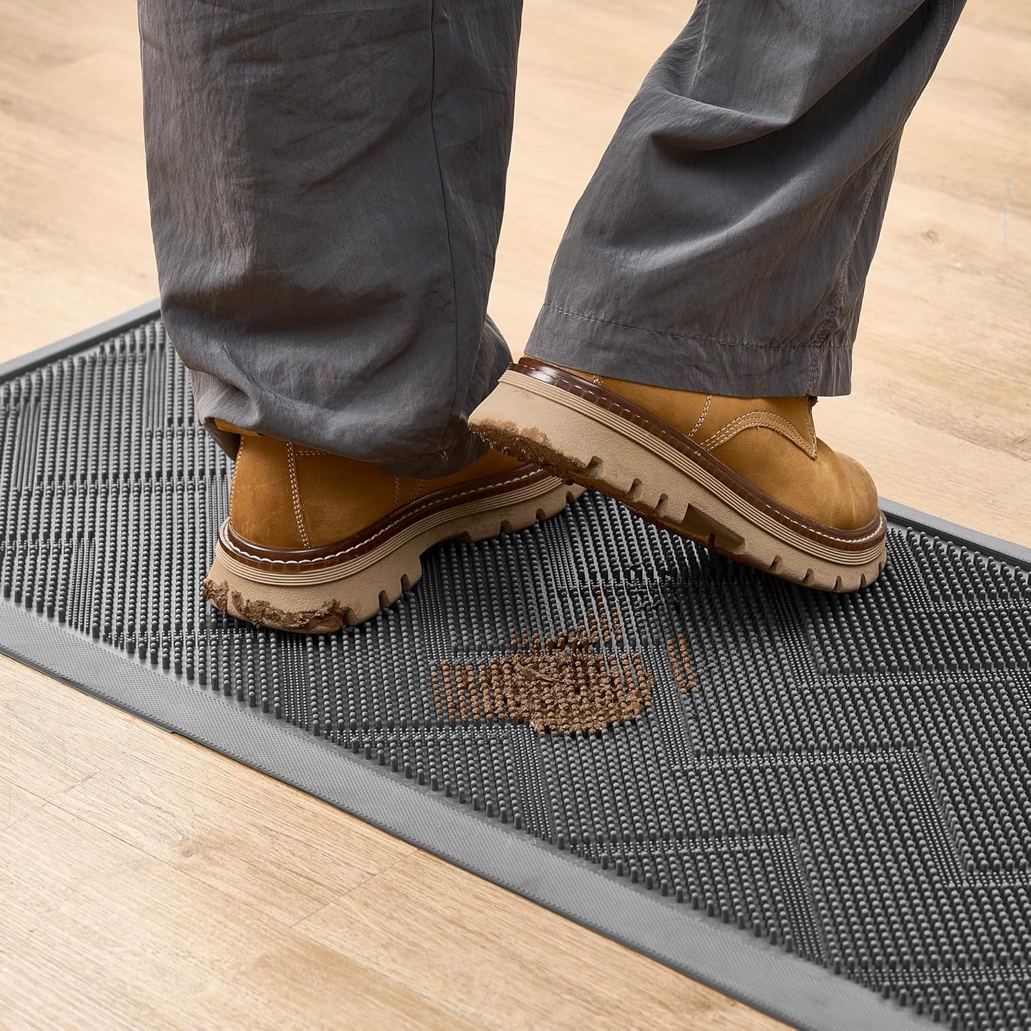 - ⭐𝗛𝗶𝗴𝗵-𝗧𝗿𝗮𝗳𝗳𝗶𝗰 𝗥𝗲𝗮𝗱𝘆: The low-profile design of this rubber floor mats allows doors to glide over without obstruction. It handles everyday foot traffic with ease, whether from guests or pets, making it a reliable outdoor door mats for outside entry