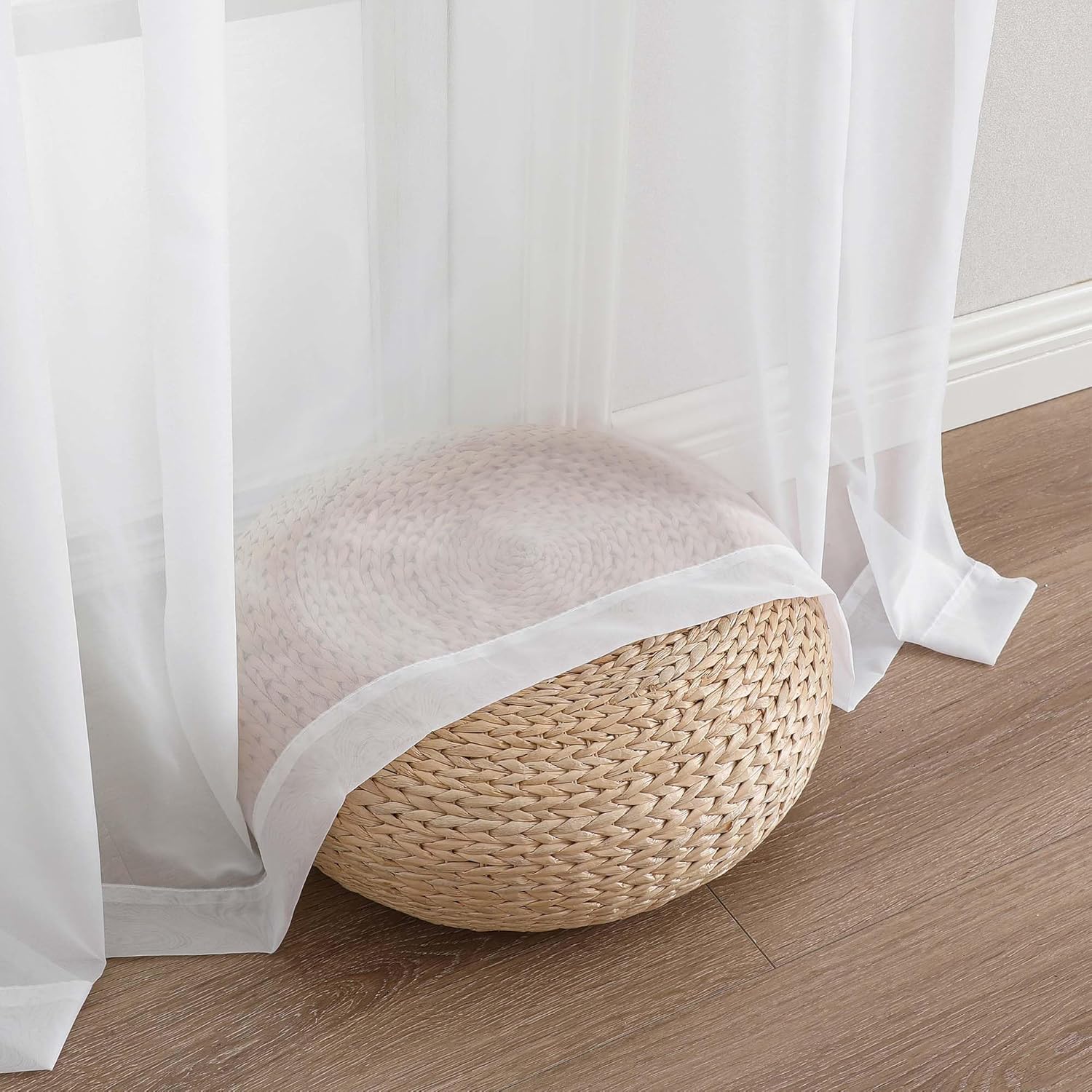 Chyhomenyc Extra Long White Sheer Curtains 144 inch 2 Panels, Translucent Backdrop Window Scarf Drapes for Canopy Bed/Wedding/Living Room/Anniversary, 12FT Length, Each 59Wx144L in, 2PCS