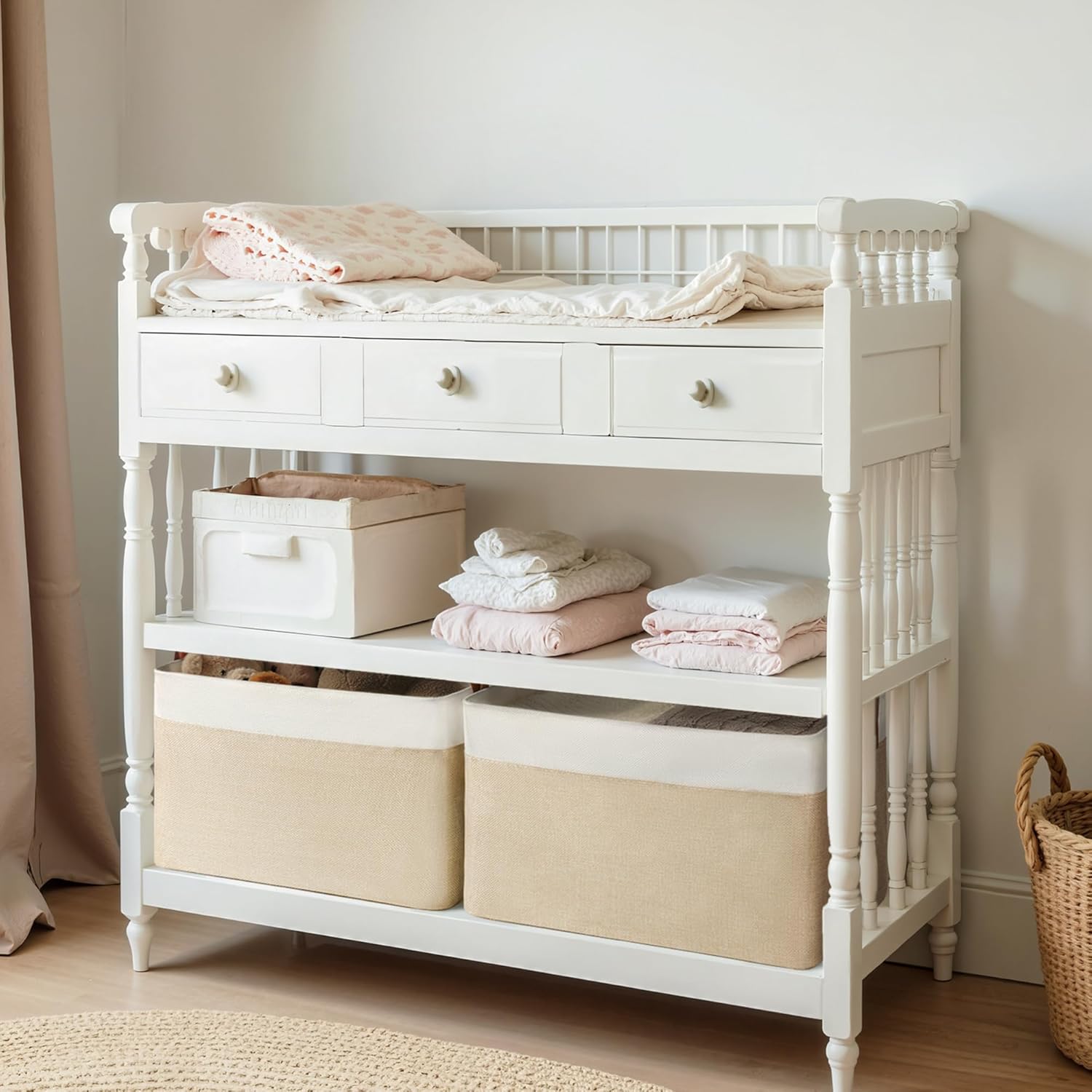 • Metal Frame Structure - The shelf baskets can keep its surroundings upright even if there are no items inside. It uses a solid iron frame inside, which has a stable structure and is not easily deformed.