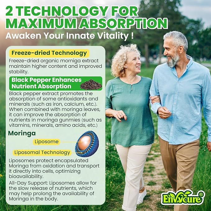 - THE ULTIMATE MORINGA GUMMIES: Moringa is one of the most nutrient-dense plants known to mankind, packed with Vitamin A, Vitamin B, Calcium, Iron, minerals, and essential amino acids, providing a natural boost to overall wellness and vitality. Envycure's Moringa Gummies are enhanced with Omega-3, Vitamin C, Zinc, and Probiotics, specifically formulated for busy professionals, those seeking improved focus and ment♡l clarity, or anyone wanting to support immunity and digestive health.
