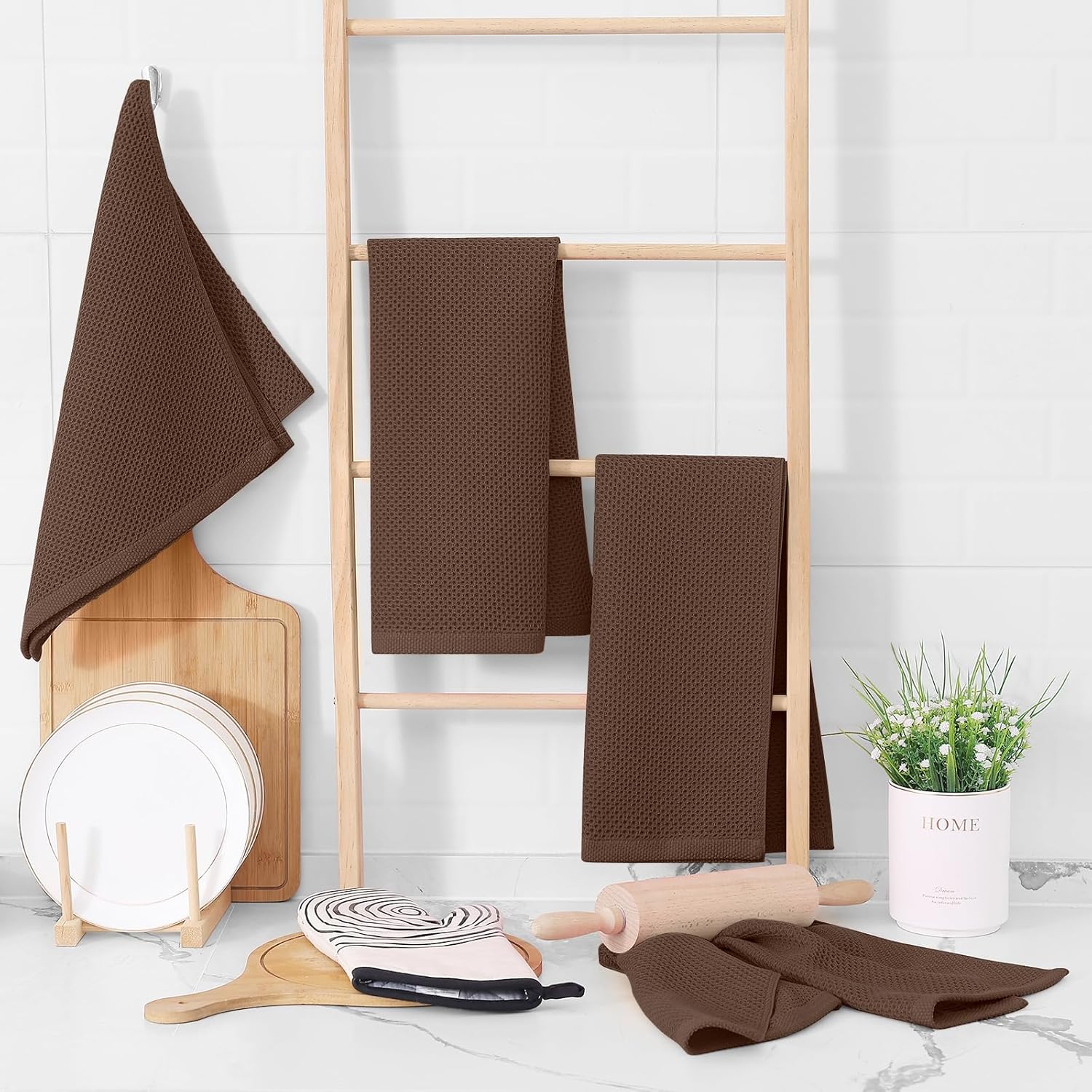 Homaxy 100% Cotton Waffle Weave Kitchen Dish Towels, Ultra Soft Absorbent Quick Drying Cleaning Towel, 13 x 28 Inches, 8-Pack, Coffee