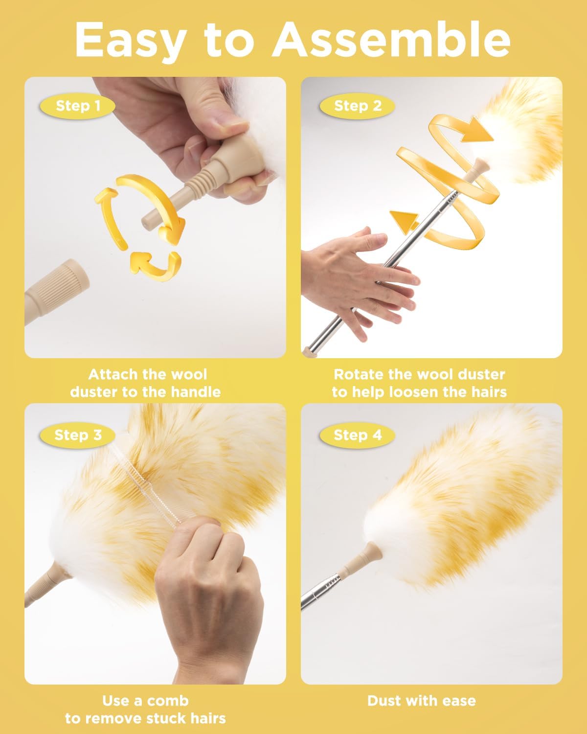 • 【PREMIUM WOOL】Crafted from ultra-soft, high-quality wool, it not only delivers a luxuriously smooth feel but also traps 95% of dust without surface damage.
