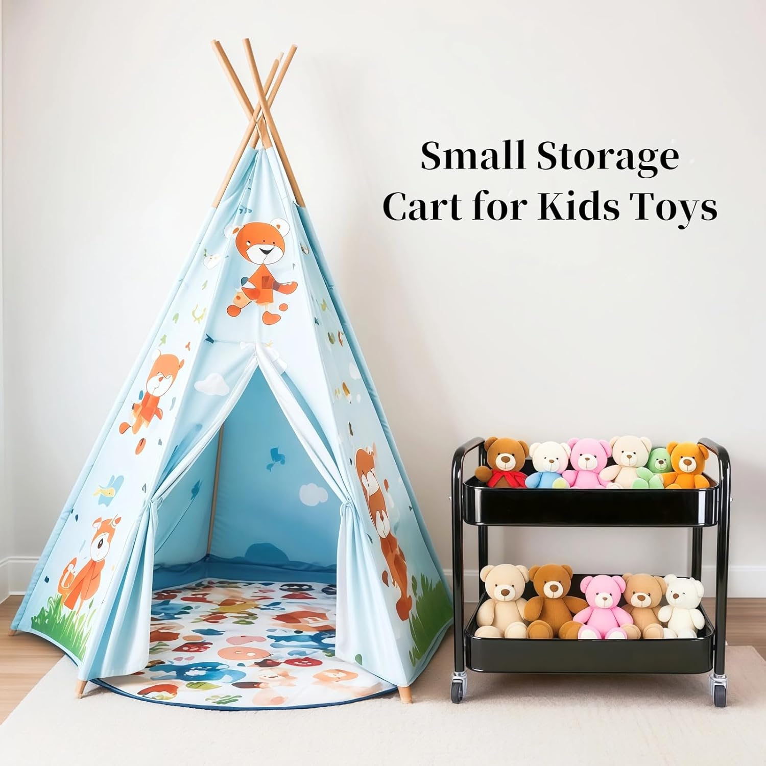 - 【Large Capacity】The trolley cart with wheels for kids(17 in L × 11.8 in W × 16.14 in H) offers exceptional functionality with its spacious 16.14 inch height. These carts with wheels organizer fits perfectly as a bedside cart for baby essentials and kids toys
