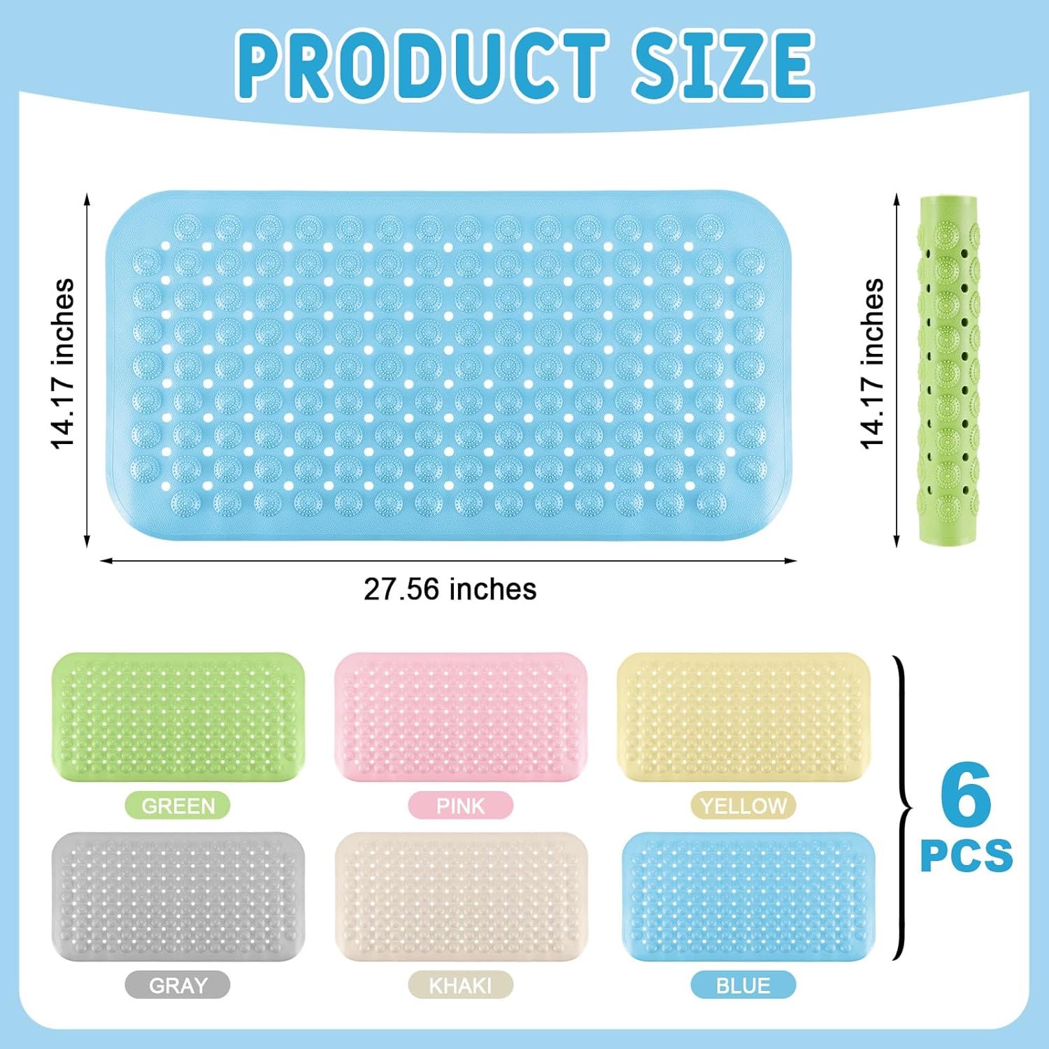 - Generous Bath Mat Set: this practical package includes 6 bath mats in coordinating colors including khaki, dark gray, light green, pink, light yellow, navy blue, enough to outfit multiple bathrooms or rotate for frequent replacement; Each shower mat features identical quality construction with pebble textured surfaces and secure suction cups; The multi pack design offers exceptional value for households with multiple bathrooms or families needing regular mat replacements