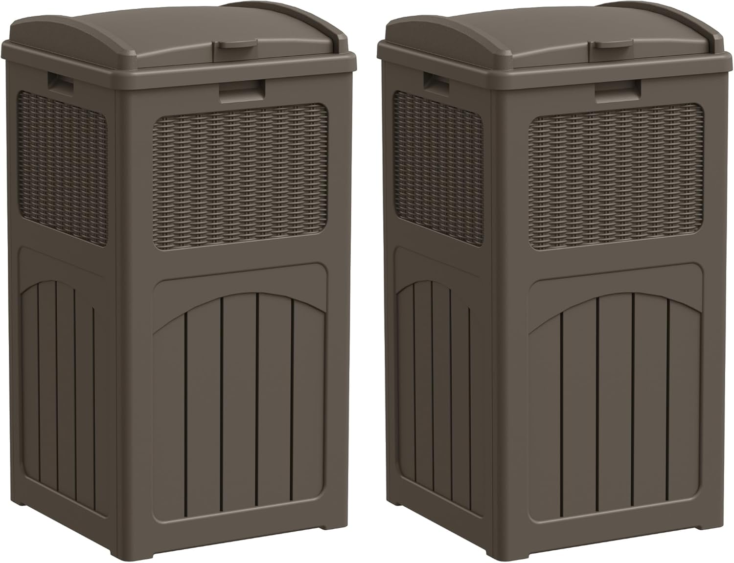 Greesum 33 Gallon Outdoor Trash Can with Lid (2-Pack), Heavy Duty Resin Garbage Bin, Waterproof & UV Resistant for Patio, Garden, Deck, Yard, Brown