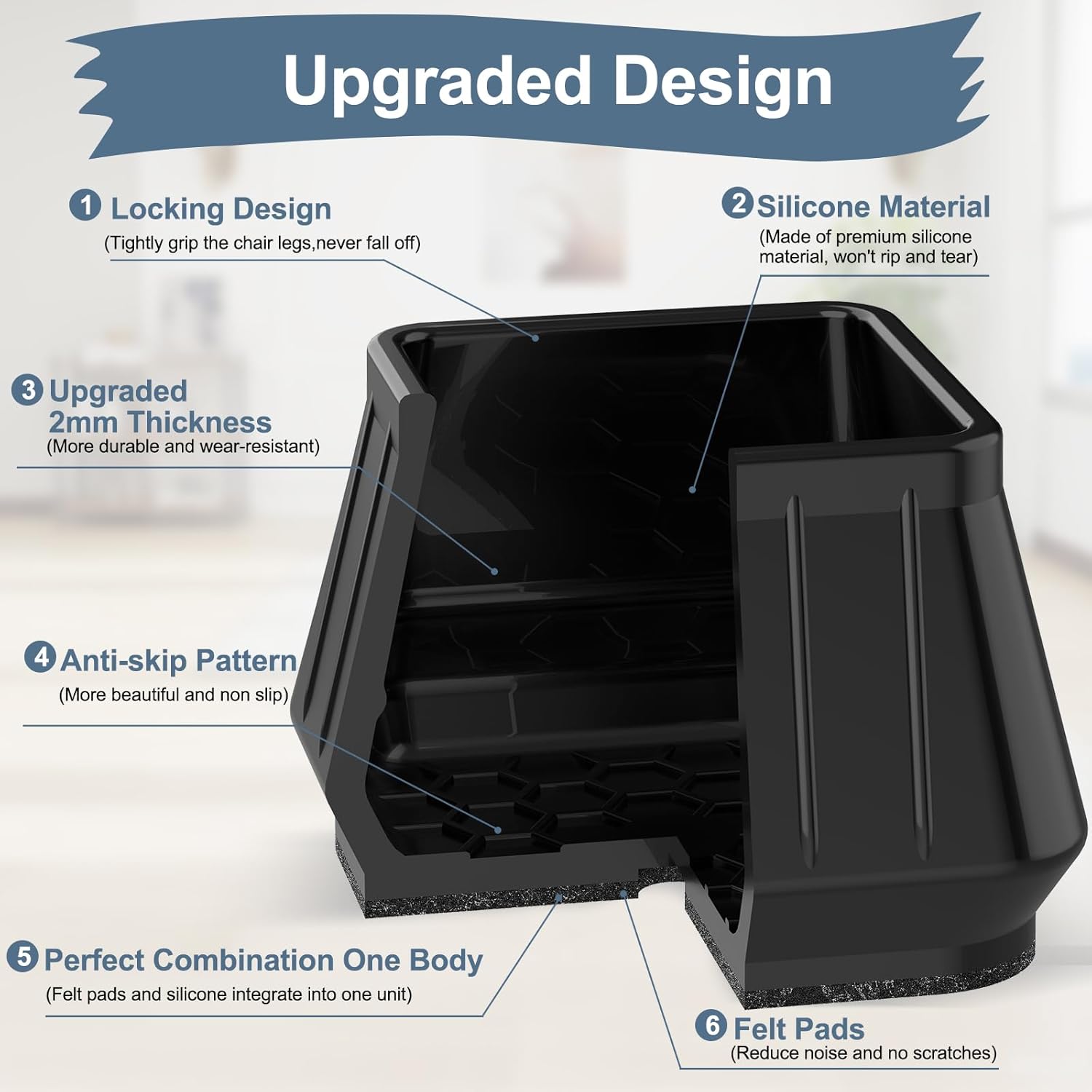 • ✅【Comprehensive Improvement】The chair leg floor protectors use special technology to combine the felt and silicone into one inseparable piece, which prevent the felt pad from falling off during use. We chose the premium quality silicone material which bonds the felt pad better, and won't tear easily when stretched.
