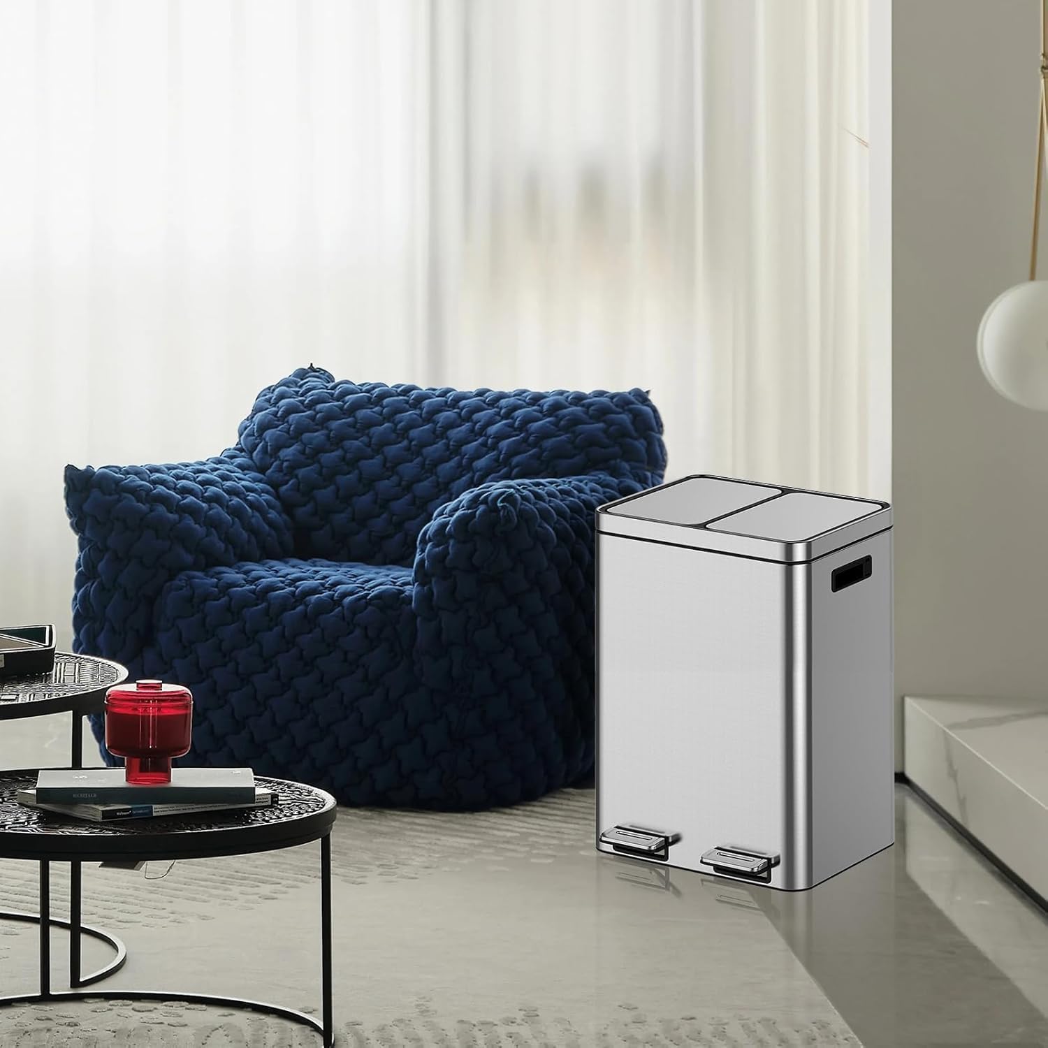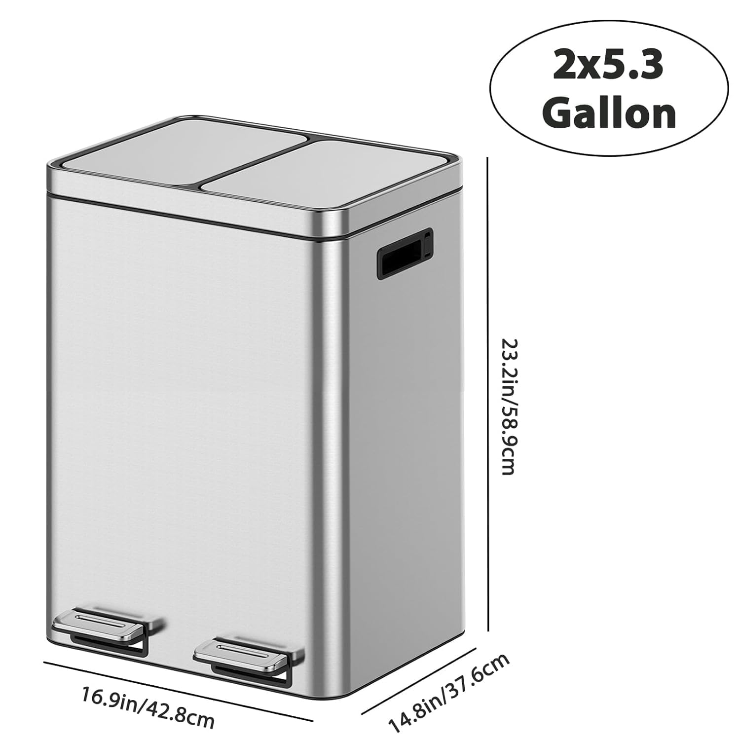 - 2 Compartment Design: Features two 5.3-gallon (20L) inner barrels for effortless sorting of dry/wet, recyclable, and non-recyclable waste—ideal for efficient kitchen organization.