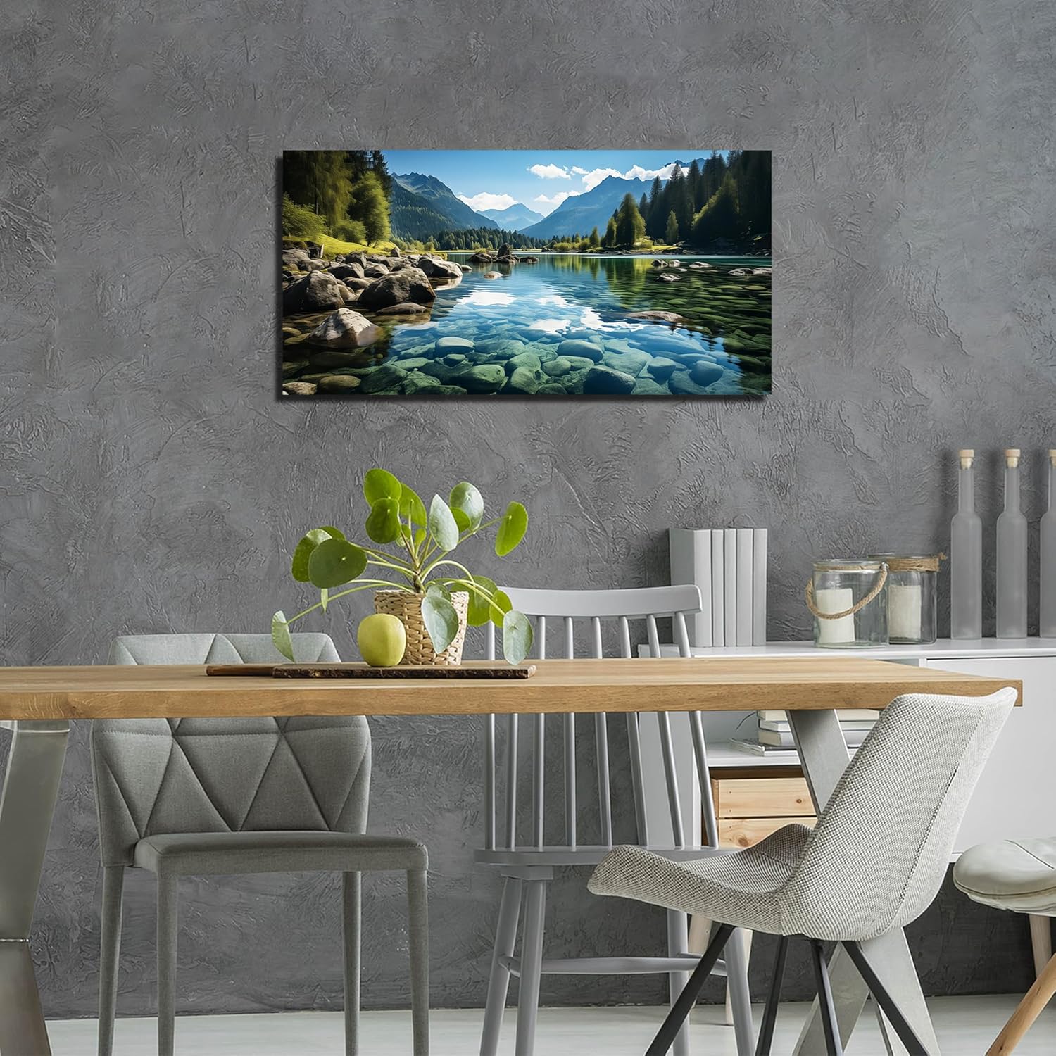 GUGIKA Landscape Wall Art for Living Room, Mountain and Lake Wall-Decor for Bedroom, Natural Scenery Canvas Prints Pictures for Hallway Office, Size 40 x 20 Inches
