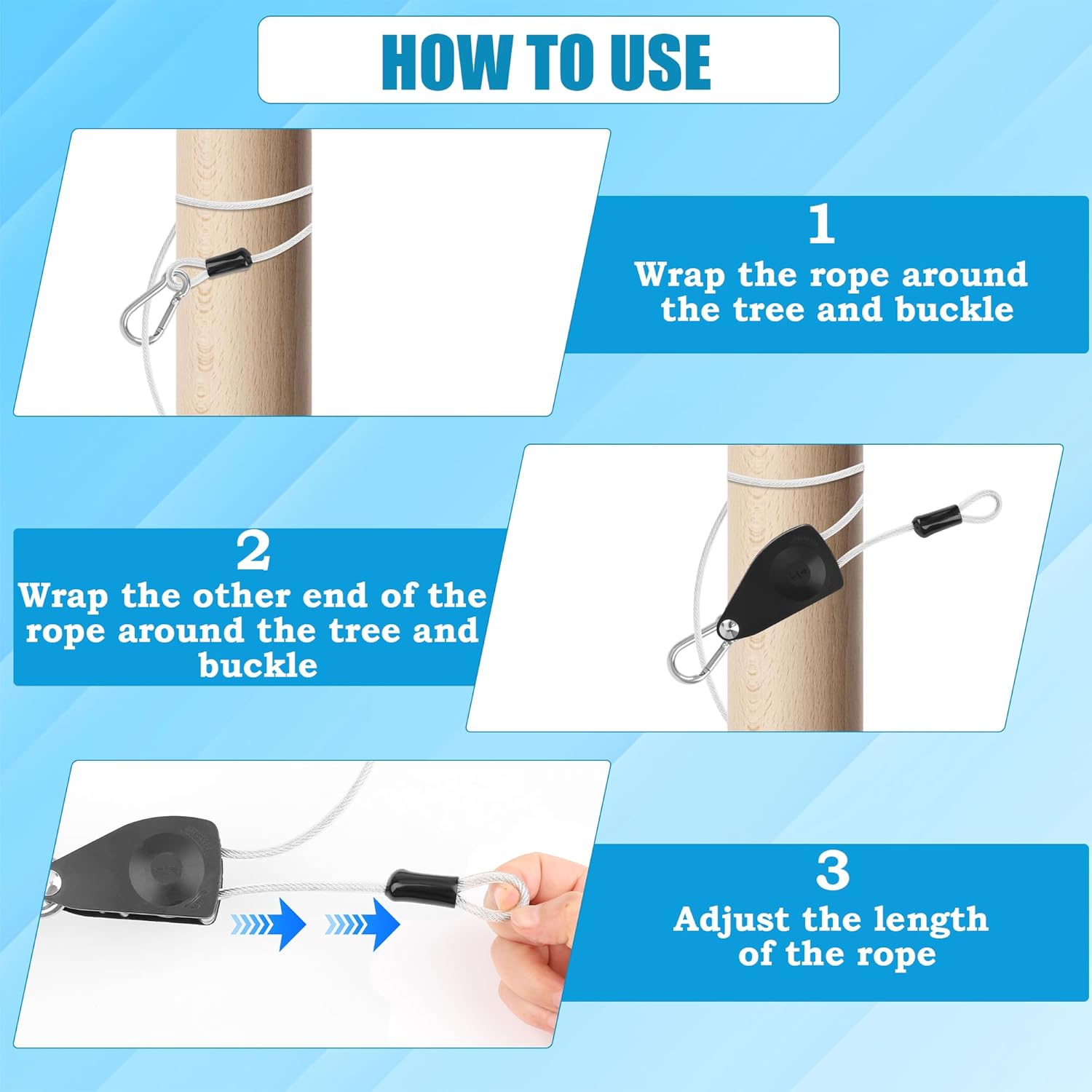 - 【2 Buckles & 2 Screws】:The clothes line outdoors has 2 metal buckles that are solid and heavy-duty, offering a firm fastening and easy use. 2 Metal ring screws, installed on the wooden stakes, are convenient for buckle hooking