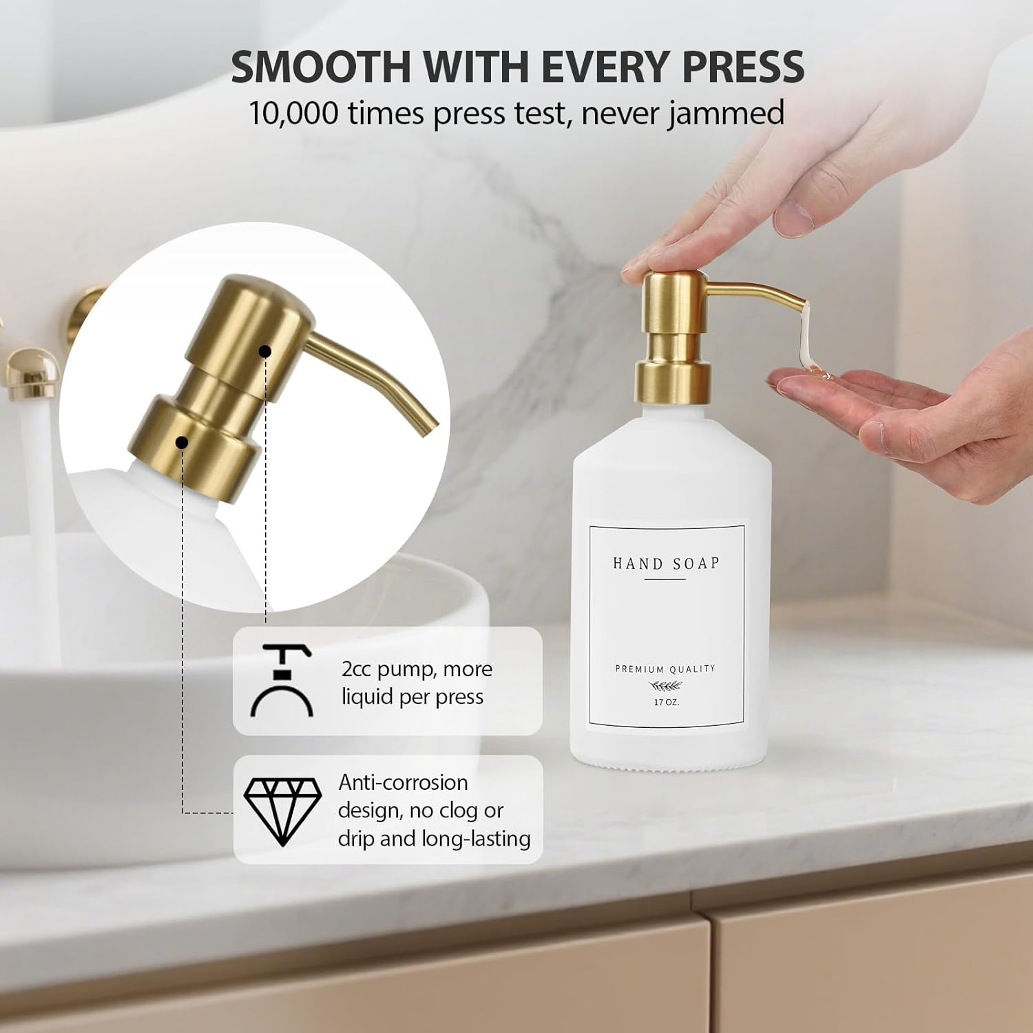 - 【High-Quality & Long-Lasting】Skip flimsy, yellowing plastic! Our bottles are crafted with thickened lead-free glass (safer than plastic). The generous 17oz capacity minimizes refills, and the upgraded rust-proof pump has passed 10,000 press tests for smooth, leak-proof operation. The collapsible silicone funnel ensures mess-free refilling and keeps your countertops spotless