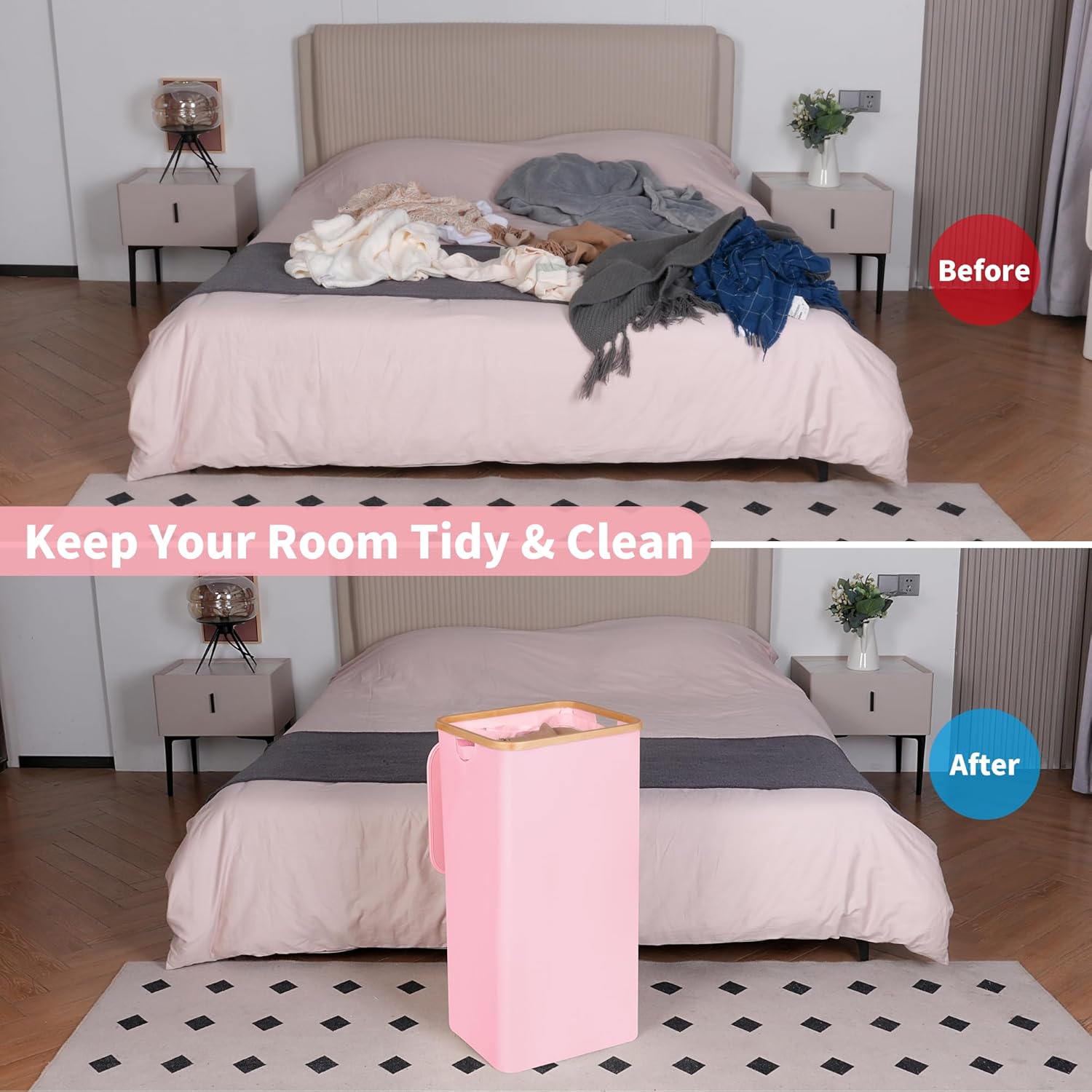 - Bamboo Handles & Removable Liner - Our laundry bin features smooth, splinter-free bamboo handles for easy carrying. The detachable inner bag allows quick sorting and machine washing, making laundry day effortless.