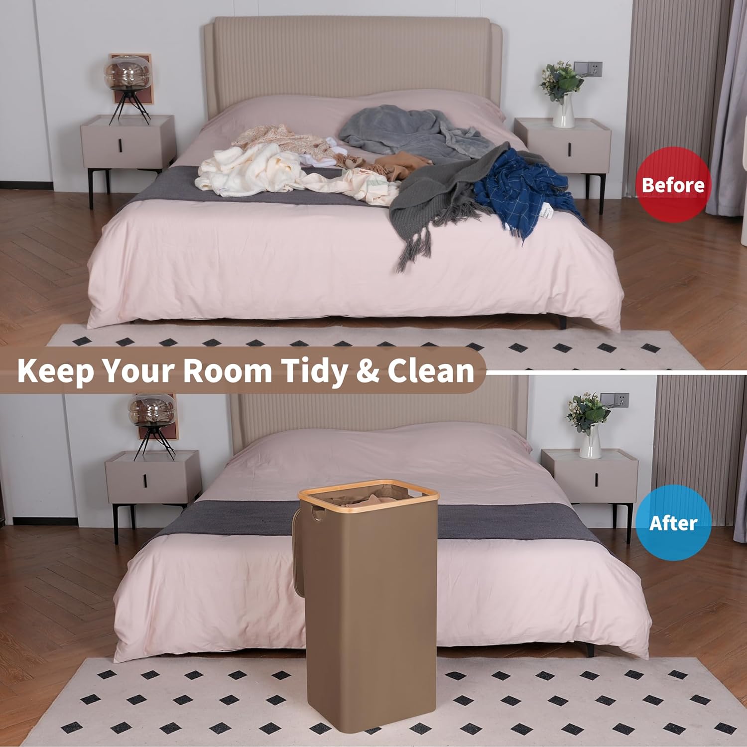 - Tall & Space-Saving Design - With a 26-gallon capacity, this tall dirty clothes hamper fits more while taking less floor space. The bamboo frame adds elegance, blending seamlessly into any room.