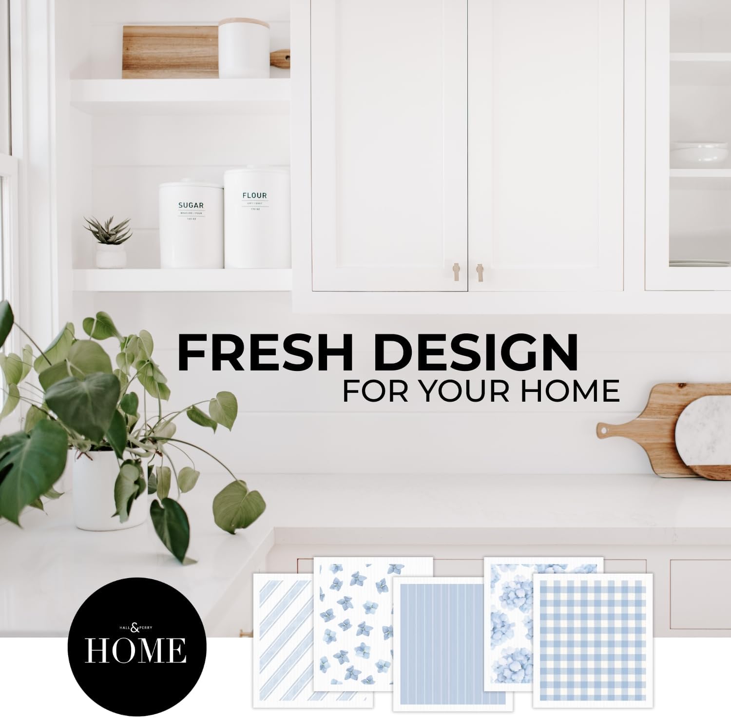 HALL & PERRY Swedish Dishcloths for Kitchen, 5-Pack, Reusable Cellulose Sponge Cloths for Kitchen & Cleaning – Eco-Friendly, Ultra-Absorbent, Quick-Drying (Floral Blue)