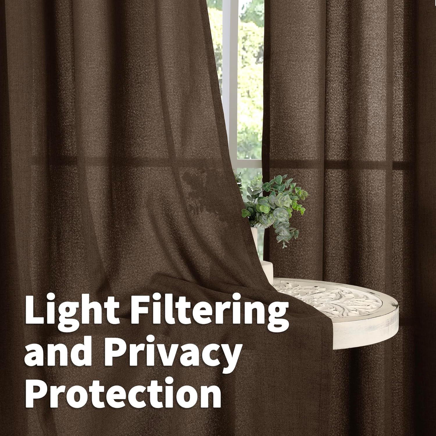 YoungsTex Brown Linen Curtains 48 Inches Long for Short Window, Light Filtering Drapes Privacy with Rod Pocket Back Tab for Bathroom Kitchen Window, 2 Panels, 42 X 48 Inch