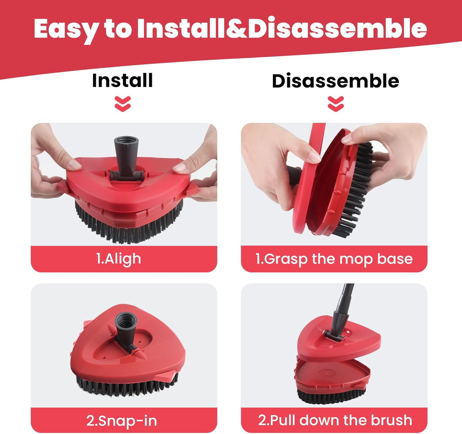 - [Various Surfaces Use]: Our scrub brush attachment is easy to install with the mop base. The shower cleaning brush head is great for almost surface, likes tile floor, concrete floor, wooden floor, marble floor, glass surface, windows and wall. Regularly replace the scrub brush head for better cleaning work