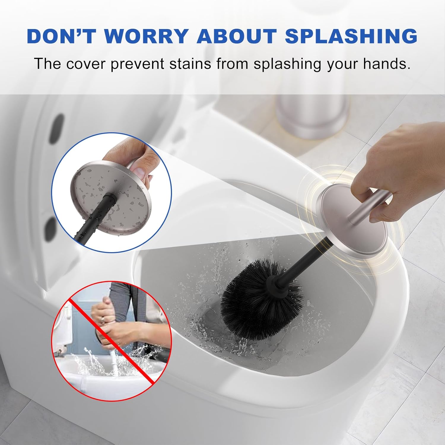 - Anti-Splash Cover for Cleaner Use: Tired of messy cleanups? Our silver toilet bowl brush includes a removable splash guard to prevent dirty water from spraying onto your hands during scrubbing. Toilet brush that doesn’t smell effortlessly tackle rim stains without the mess