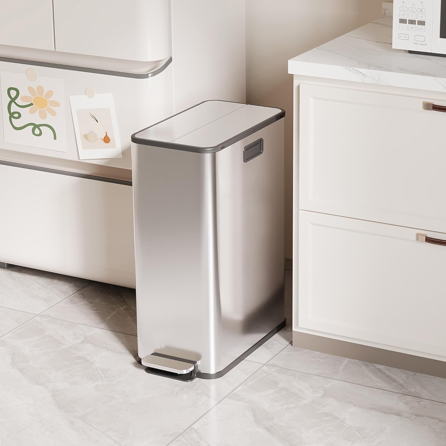 - Durable and Pet-Proof: Constructed from premium stainless steel, this durable bin features a sturdy pedal and fully sealed lid that prevent pets from opening it, ensuring your waste stays secure and out of reach.
