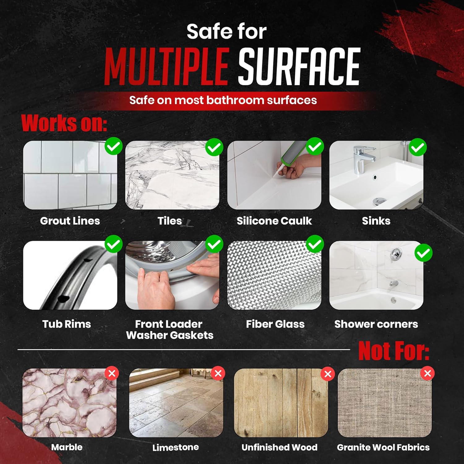 - Wide Range of Use: Powerful cleaner for rubber gasket, front-loading laundry drum, washer mildew stains, refrigerator seal strips, and bathroom mold on shower walls or caulking. Effectively removes stains on tub, tile, walls, showers, grout, and acts as a bathtub stain remover. Ideal for washing and cleaning indoor household stains.