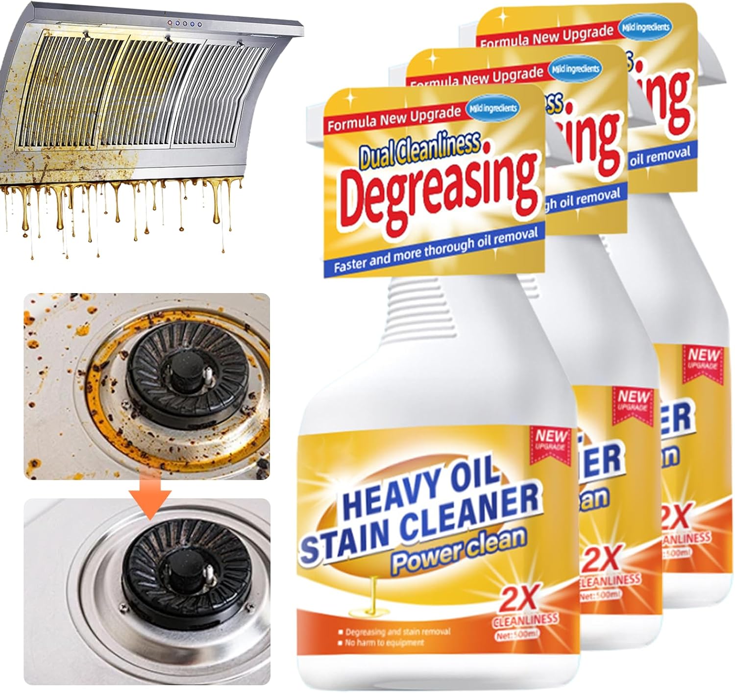 - đŠăPowerful Heavy Oil Stain RemovalăThis Kitchen Heavy Oil Cleaner easily tackles tough oil stains and grease on kitchen range hoods, stovetops, and dining tables. No heavy scrubbing neededâit quickly breaks down sticky oil, restores surfaces to a clean, shiny state, and reduces cleaning time.