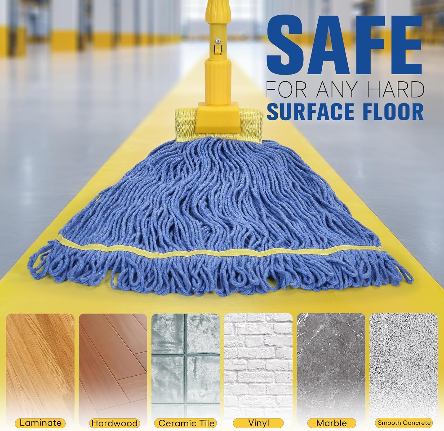- 4-Ply Cotton Blend String: Constructed with a 4-ply twist yarn made from 60% post-industrial cotton, 25% synthetic fibers and 15% rayon. Combining the advantage of several fibers that offers exceptional water absorption and strength for effective floor cleaning and drying.