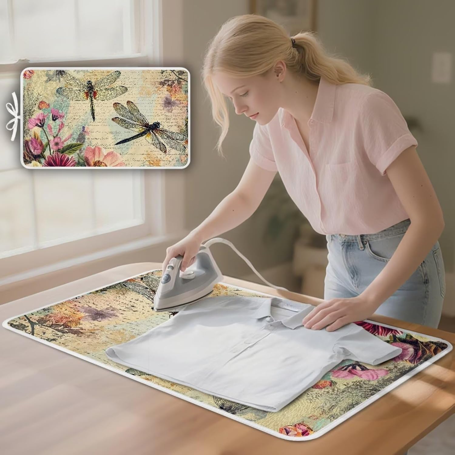 Vintage Ironing Pad Dragonfly Ironing Blanket Thick Travel Iron Pad Heat Resistant Ironing Board Cover for Table Top, Washer, Dryer,32 x 16 Inch Ironing Mats
