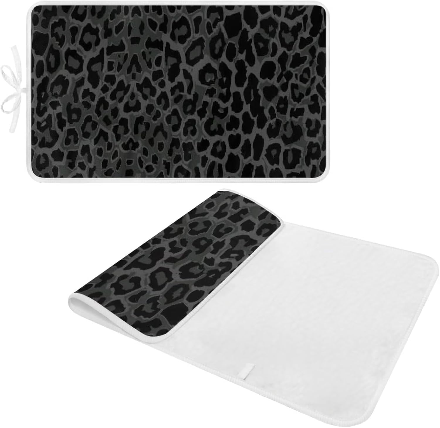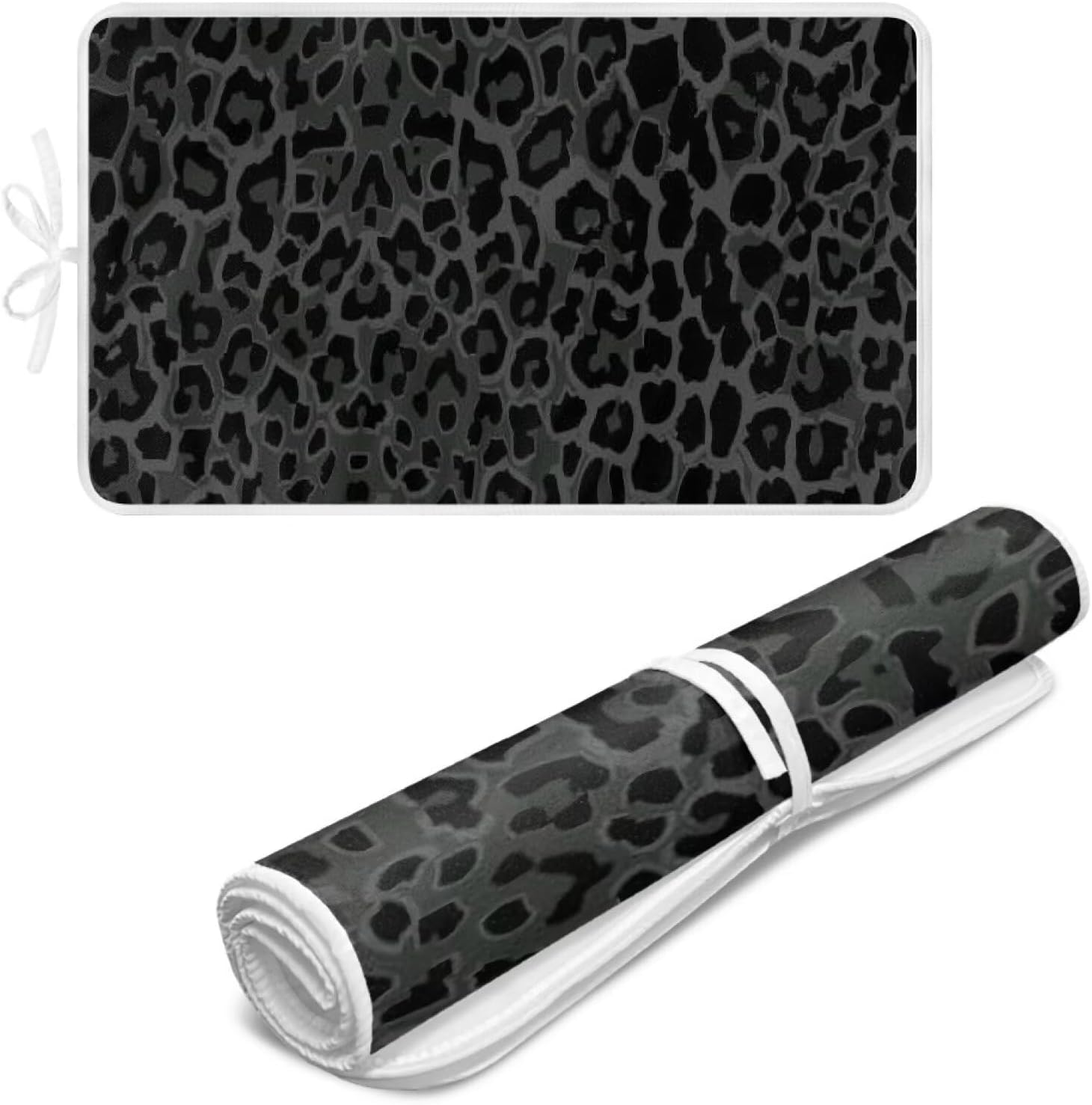 Black Ironing Mat Portable Leopard Print Ironing Pad for Steam Pressing on Tabletop or Bed,Heat Resistant Portable Quilting & Travel Blanket Ironing Board Alternative Cover
