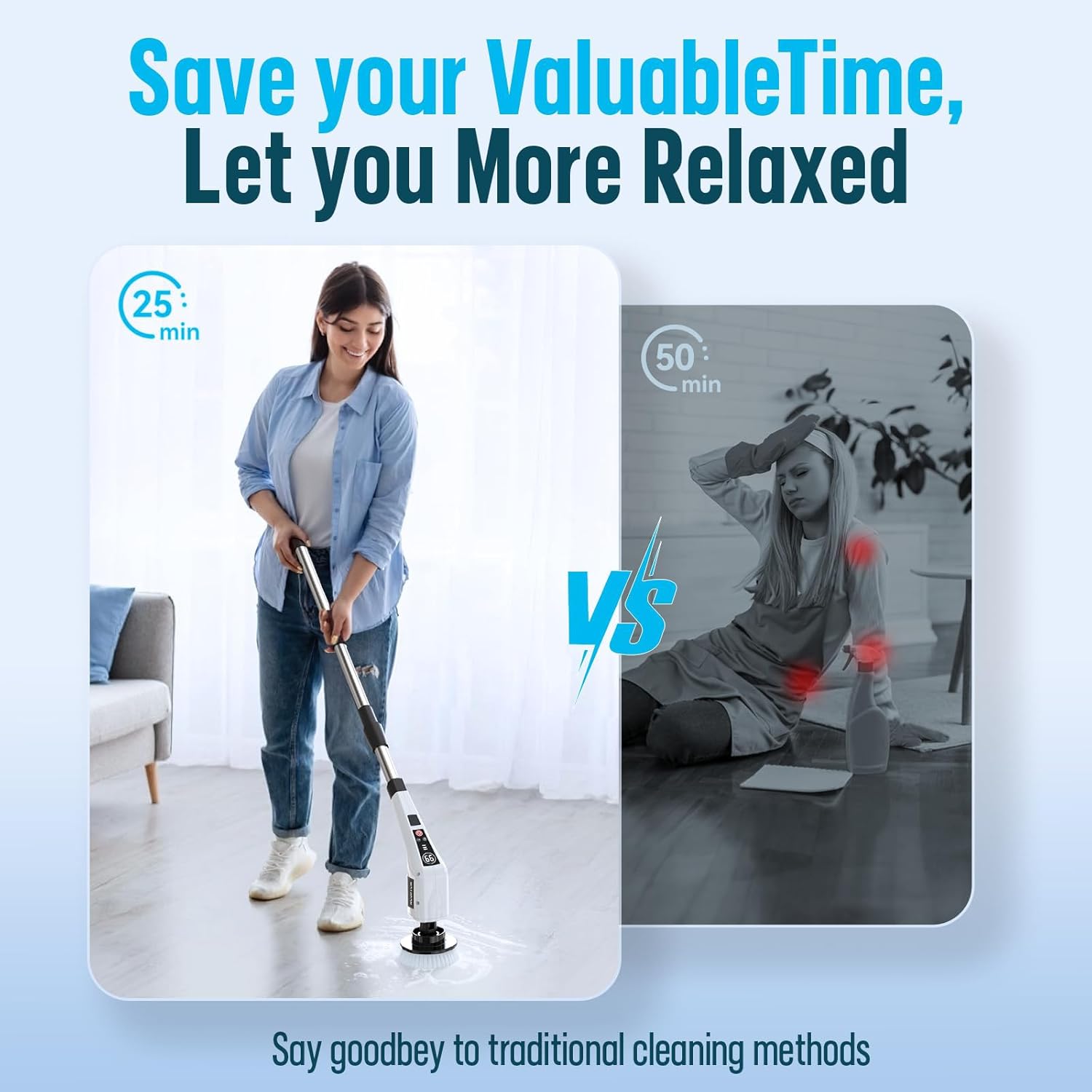 - 【Long Battery Life with Fast Charging】Equipped with a 5000mAh rechargeable battery, Type-C fast charging and LED battery display screen. This cordless spin scrubber runs up to 140 minutes on a single charge. Whether you’re tackling a full deep clean or a quick touch-up, this electric shower scrubber is always ready. It's the perfect companion for those who need a reliable electric cleaning brush for household use