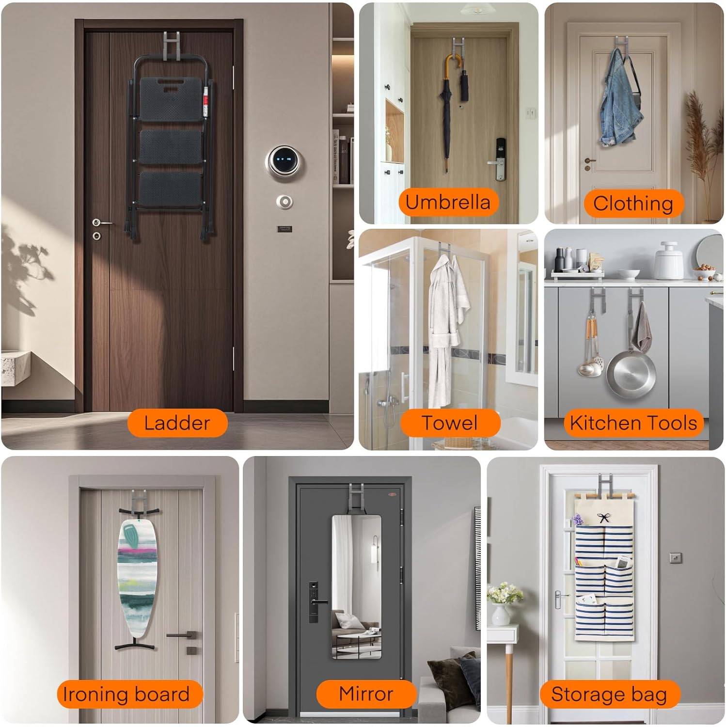 - High Quality: Our over the door hooks are made of heavy duty metal, which is sturdy and rust-resistant, will not deform and ensure a long-lasting performance. Each hook can hold up to 100lb, provide great support for items