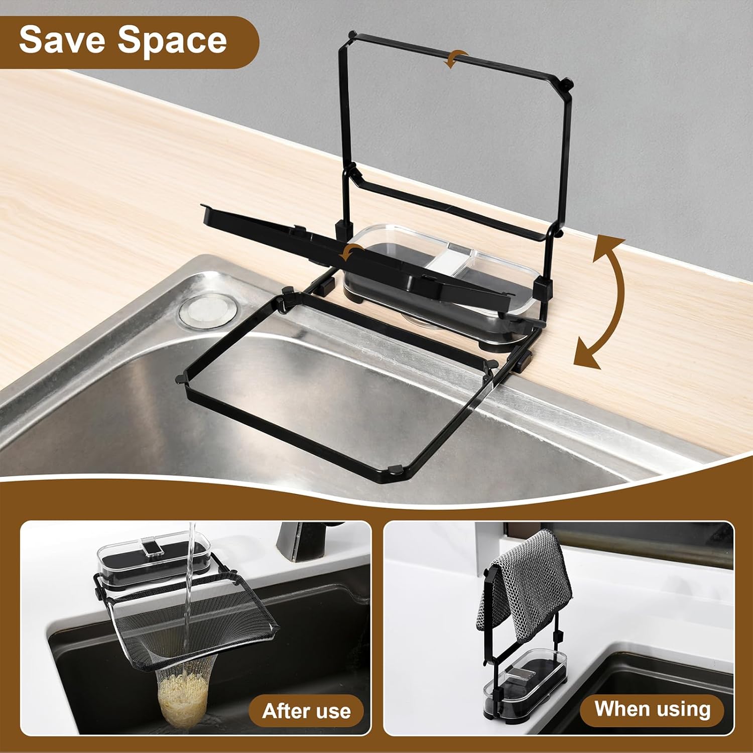 - 3.Space-Saving & Multi-Functional Design:Features a versatile design that rotates 90° to stand upright as a towel/dish rack or folds compactly when not in use. kitchen sink garbage strainer as a drain rack for fruits, veggies, and dishes.