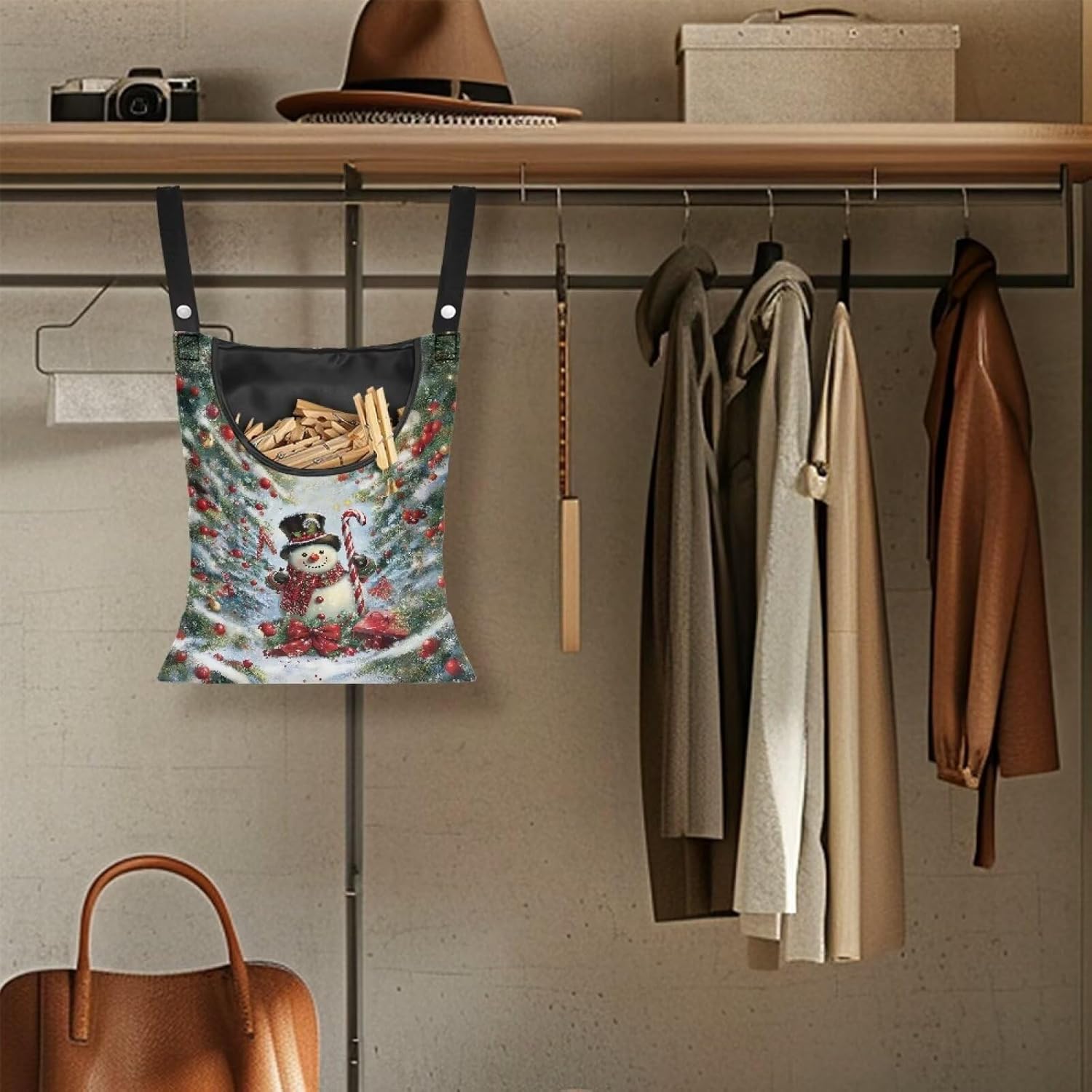 Snowman Clothespin Bag Christmas 2025 Hanging Storage Organizer Clothes Pin Bag Waterproof Laundry Clothespin Bag Clothespin Holder with Hanger Hook for Easy Hang and Large Opening