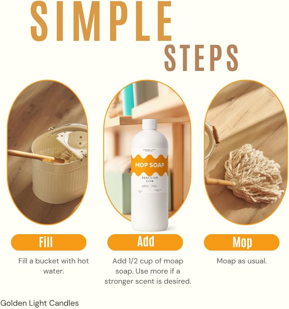 Mop Soap – Highly Scented Luxury Floor Cleaner Concentrate – Brazilian Glow Scent, Leaves Floors Shiny Without Any Residue – Multi-Surface Floor Mopping Solution, Made in USA, 32 oz